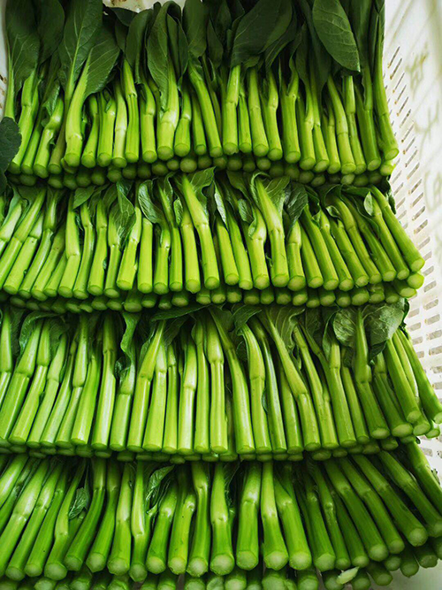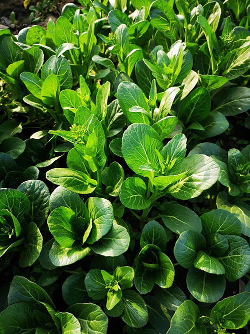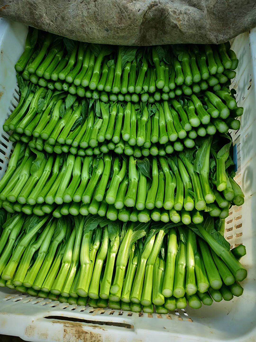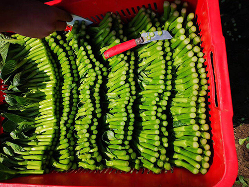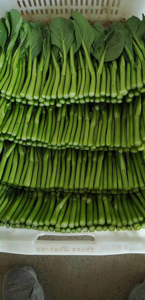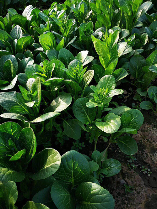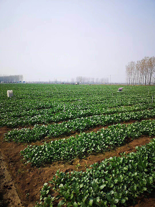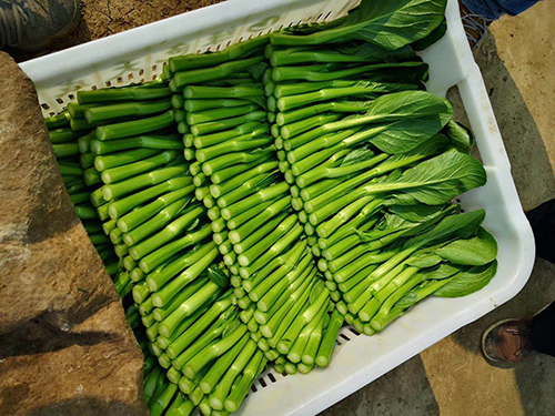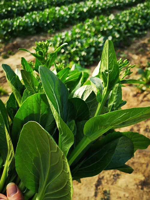 陳景求大老板與公司李明總經(jīng)理檢查種植尖葉菜心生長(zhǎng)情況
