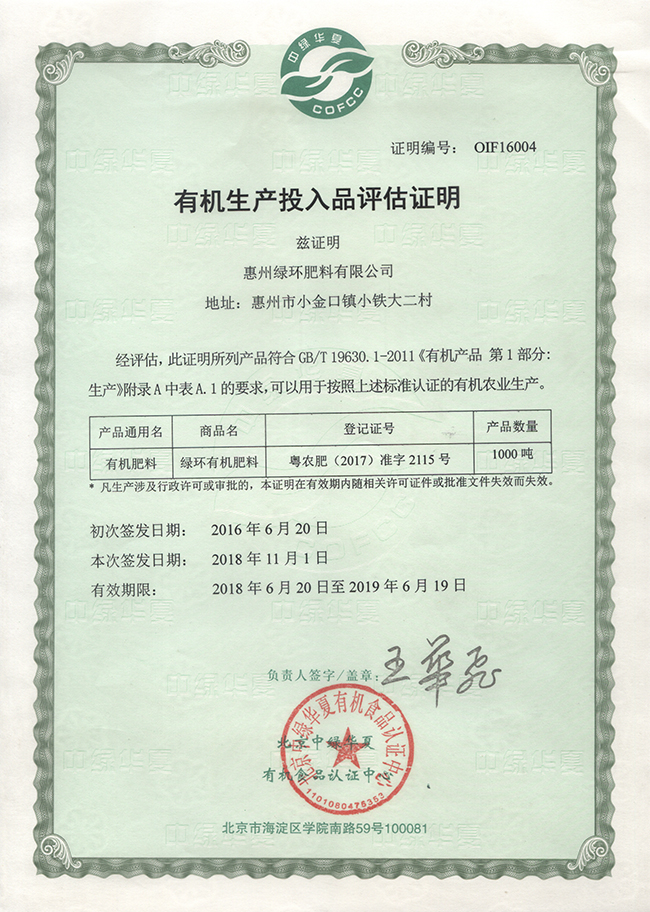 有機(jī)生產(chǎn)投入品評(píng)估證明