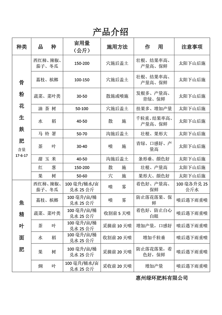 惠州綠環(huán)肥料有限公司 行政區(qū)號(hào): 441300 郵政編碼: 516023 公司地址: 小金口鎮(zhèn)小鐵大二村 地址:廣東省惠州市惠州大道北高速公路出口(小金口出口700米) 電話/傳真:0752-2298089 手機(jī):13502285131 李先生